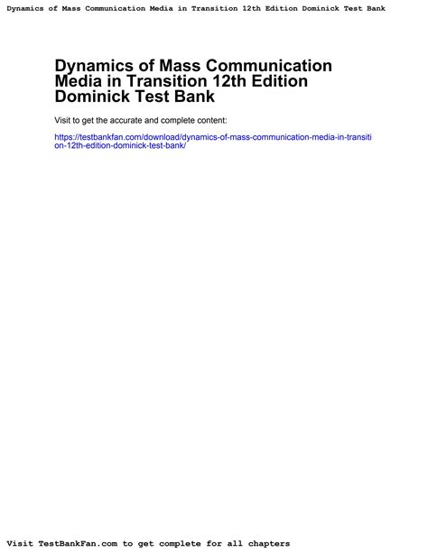 Free PDF DYNAMICS OF MASS COMMUNICATION 12TH EDITION DOMINICK iBooks Internet Archive